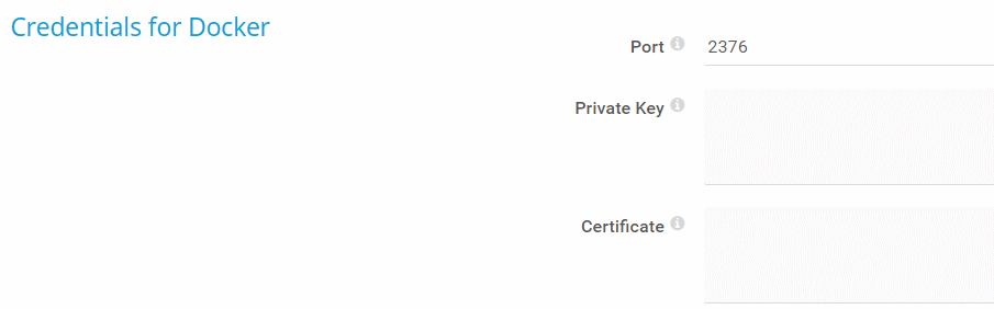 Provide the private key for the connection to Docker. If you have already created a key, you can use it here. Otherwise, create a key on Docker first.