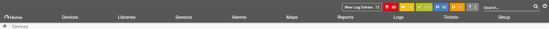 Below the main menu bar, PRTG shows a path that retraces the steps back to the Welcome page (or your defined starting page). Use these breadcrumbs to navigate back to where you came from.