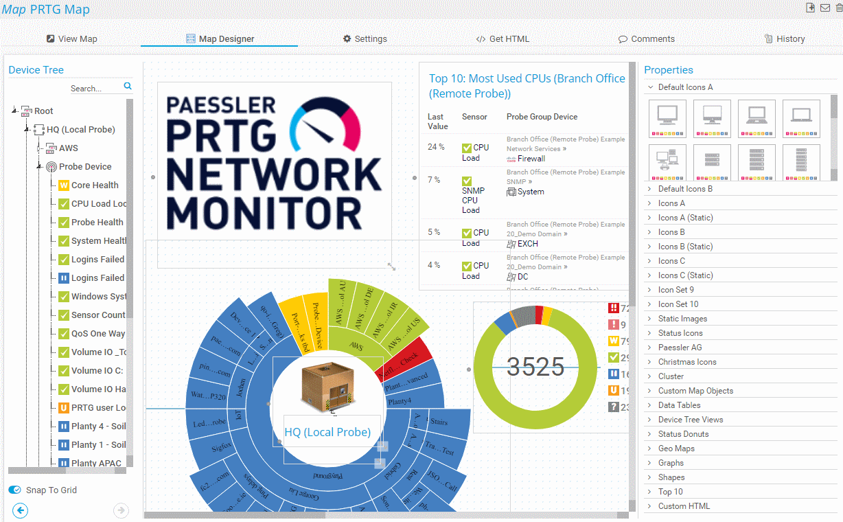 With the Map Designer feature, you can create custom web pages as maps, or dashboards, that represent your network.