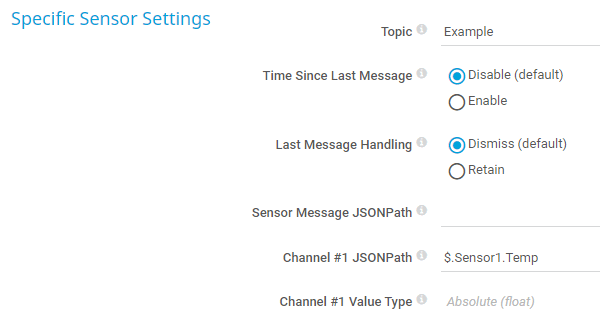 Optionally enter the path to the value in the JSON data. The sensor shows the received value as the sensor message.